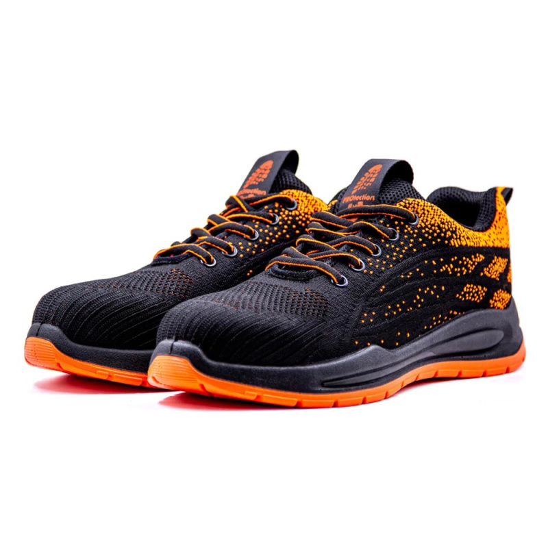 Кроссовки текстильные ПУ/ТПУ с КП чёрные с оранжевым