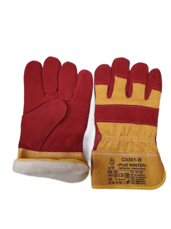 Перчатки спилковые комбинированные утепленные, жесткая крага